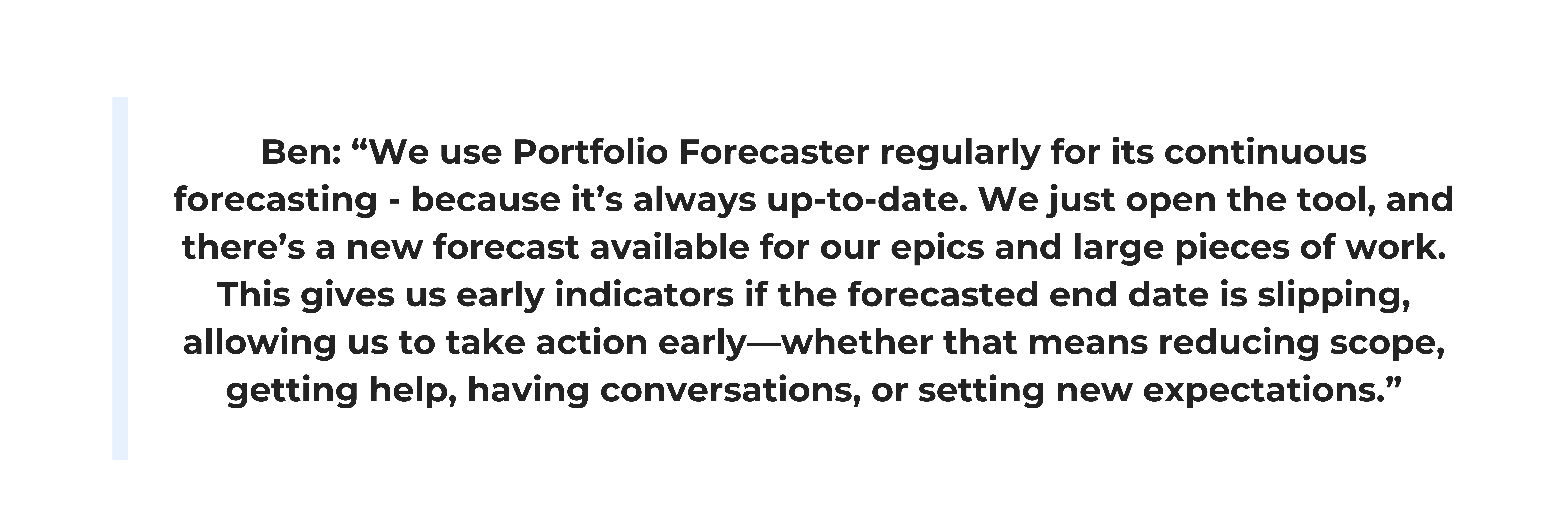 What sets the Portfolio Forecaster apart is its flexibility. Ben highlights that it’s not tied to a rigid schedule and can be used dynamically to support planning and prioritization whenever needed.