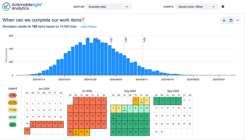 The strategy we use in our flagship product, ActionableAgile Analytics, uses a technique called probabilistic forecasting. As the name implies it helps you provide a forecast that examines possible outcomes and the likelihood of each. This makes it perfect for situations where there's not a single obvious, inarguable outcome.