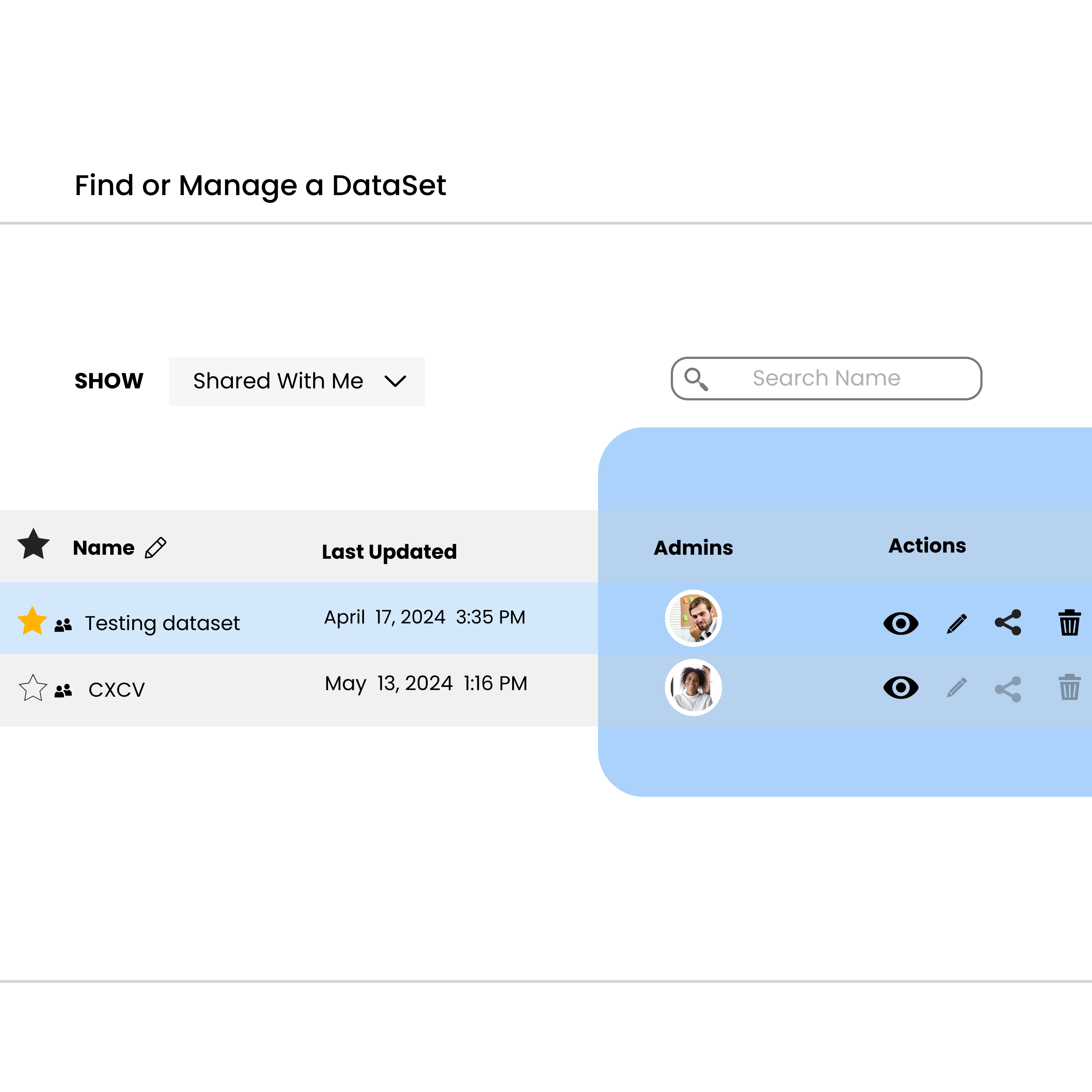 Admins: Can view, share, edit, and delete the dataset.