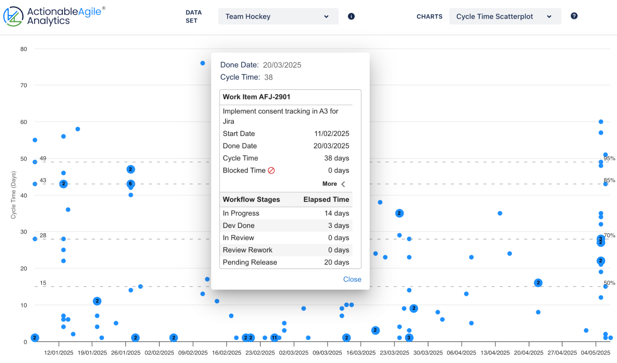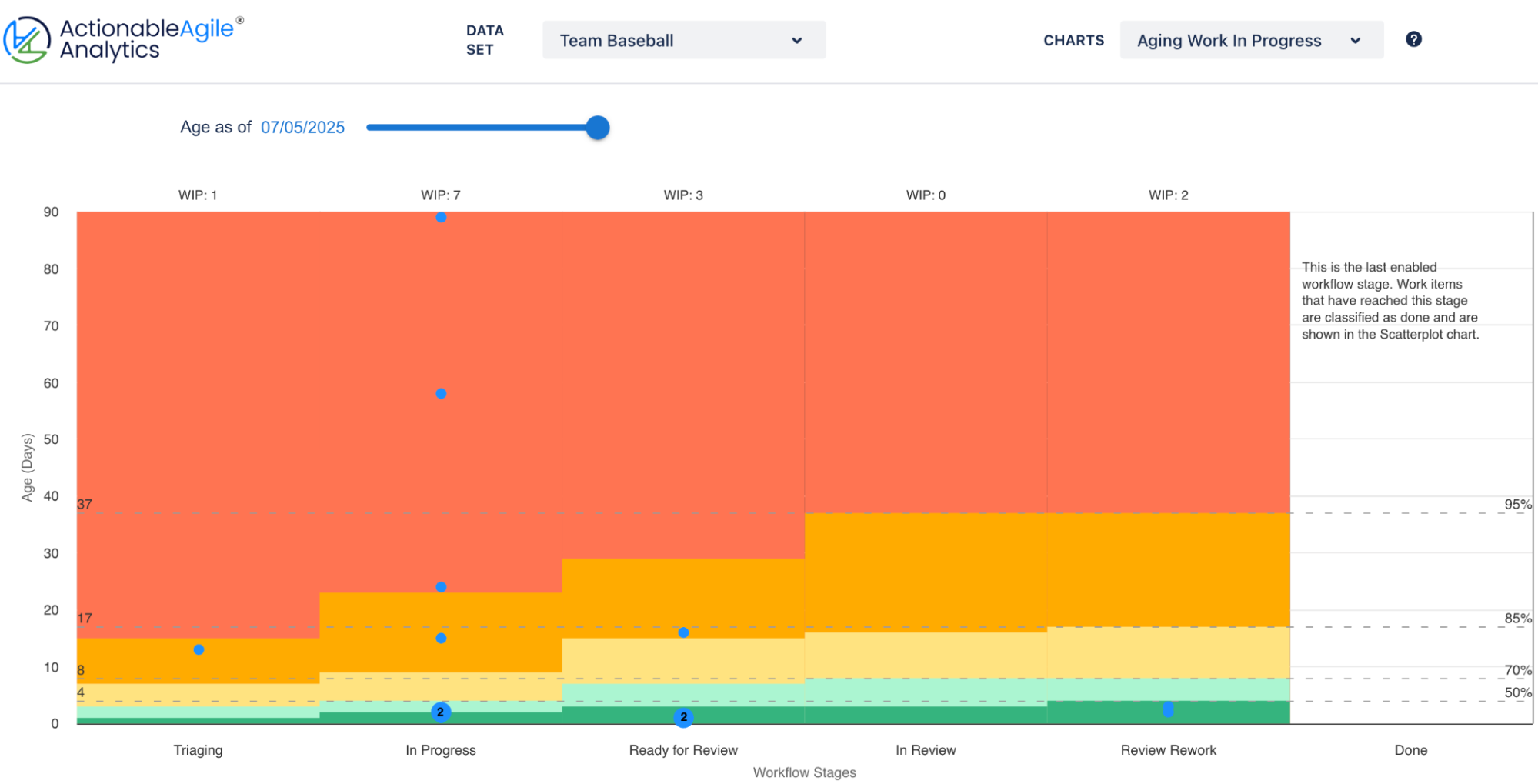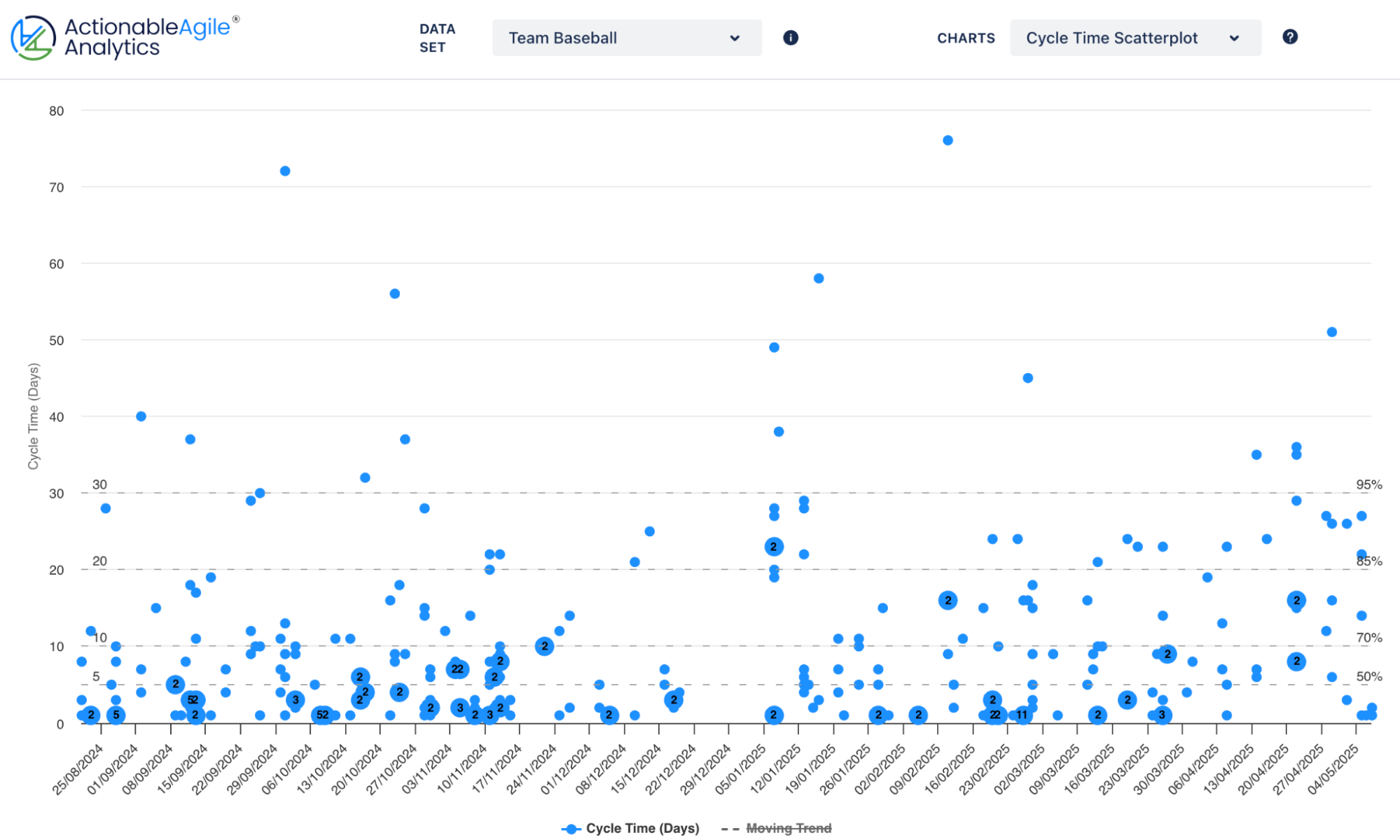 ActionableAgile® Analytics is a powerful flow metrics tool that helps teams track work progress, spot bottlenecks, and improve predictability — all within Jira. With insights into Cycle Time, Throughput, Aging Work in Progress (WIP), and Monte Carlo Simulations, teams can move beyond gut feeling and make data-driven decisions about delivery speed and efficiency.