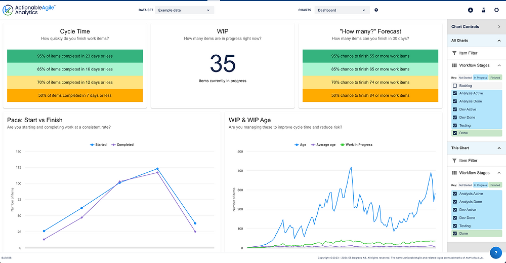Are you excited to dive in? You'll be pleased to know that these updates are just around the corner, likely by the end of June—or maybe even sooner, depending on where you use ActionableAgile Analytics. We'll ensure all users see an announcement pop-up in the app once we've launched version 5.0. We're eager to hear what you think! Head on over to the 55 Degrees community and let us know!