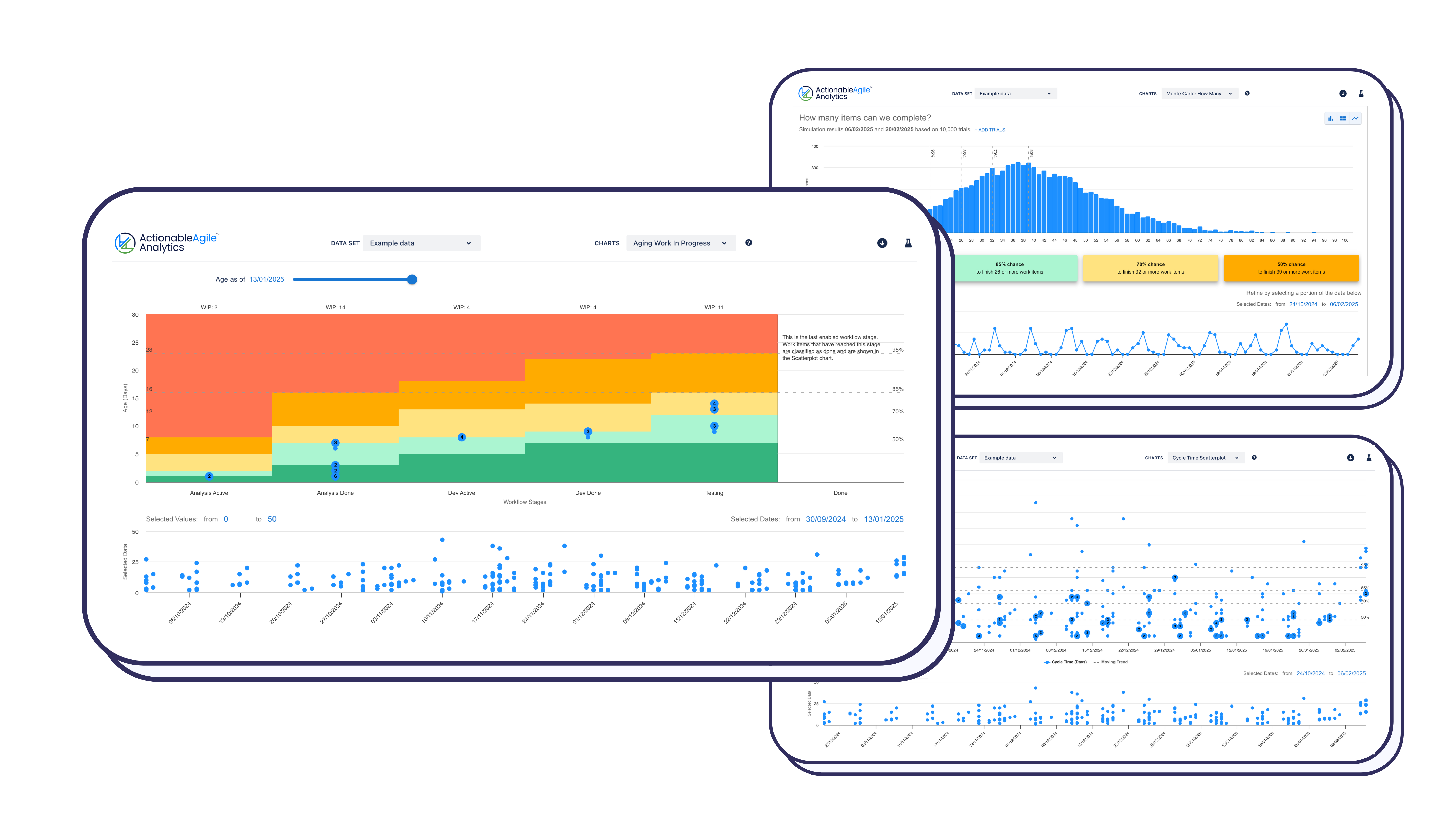 Wireless Logic started using ActionableAgile® Analytics in Jira Cloud in mid-2023 as part of their overhaul to move away from time-based estimates. While working in three-week sprints, probabilistic forecasting has since proved to be not only more accurate but also a better fit for Wireless Logic’s growing needs.