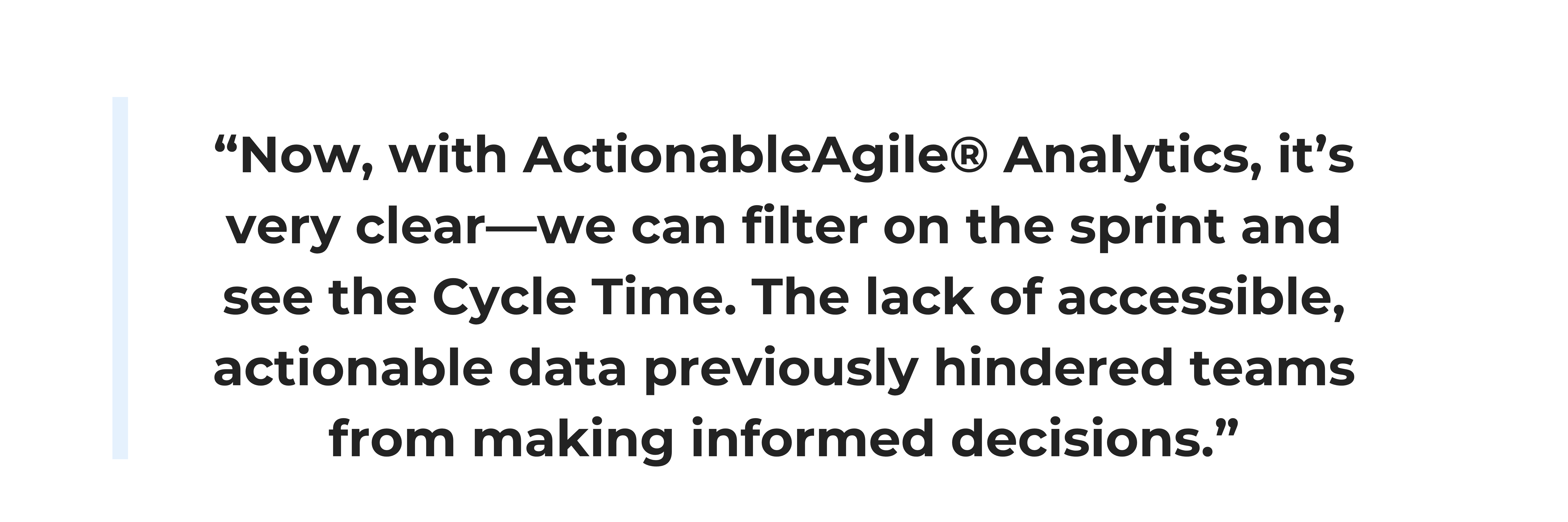 The adoption of actionable data through metrics like WIP aging and cycle time has driven meaningful conversations in retrospectives and daily scrums.